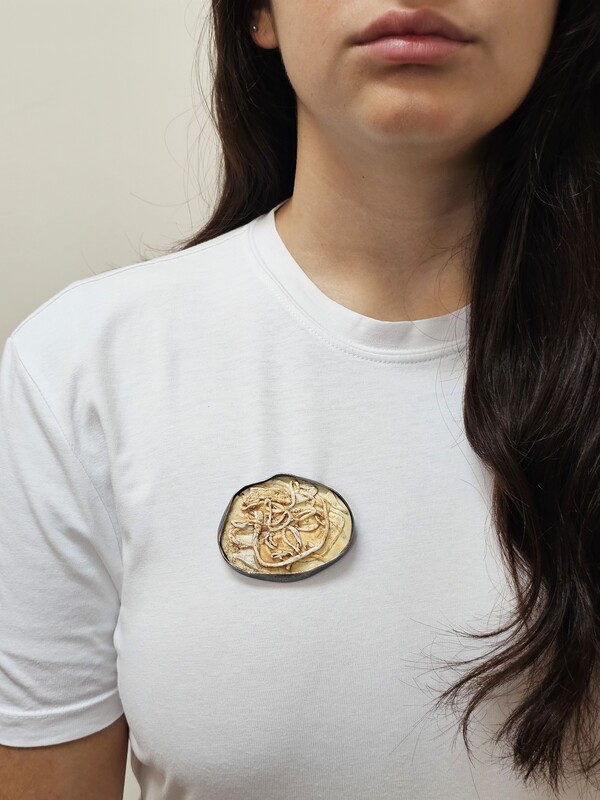 Com o meu projeto, quis criar peças de joalharia explorando e testando diferentes formas de transformar e reutilizar plástico (especificamente HDPE). Estas peças podem flutuar sobre a roupa, no corpo humano.